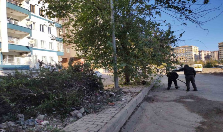 Diyarbakır’da Bağlar Belediyesi Park ve Bahçeler Müdürlüğü ekipleri, ilçede görüntü kirliliği ve bakım ihtiyacı duyulan ağaçları budadı.