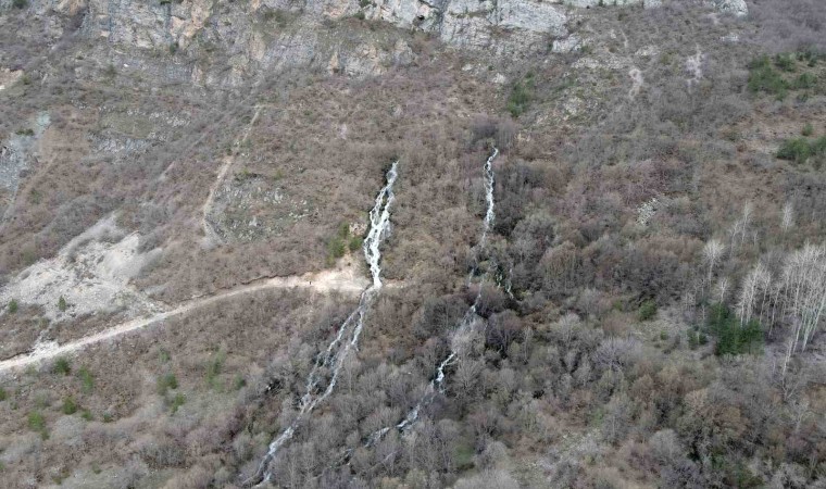 Gümüşhane’nin Torul ilçesine bağlı Gülaçar köyünde her yıl bahar aylarında yaşanan ilginç doğa olayında köyün her iki yamacında da aynı anda ortaya çıkan ve aynı anda kaybolan su kaynakları 2 ay boyunca görsel şölen oluşturuyor.