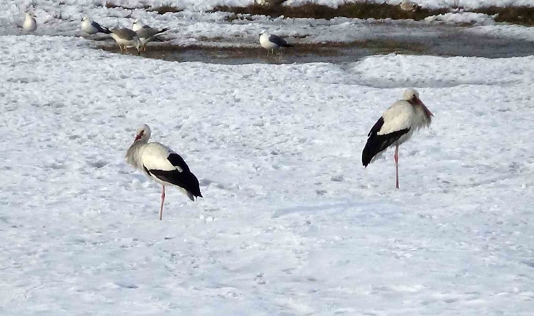 Van’ın İpekyolu ilçesinde dondurucu soğukta yaşamayı sürdüren ve baharın müjdecisi olarak bilinen 4 leylek, bu yıl Van’dan göç etmedi.
