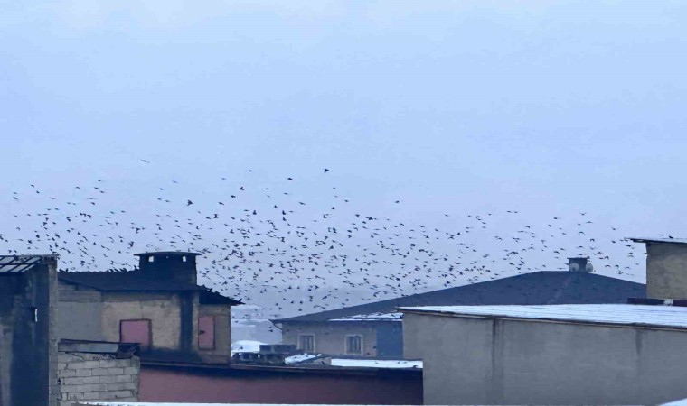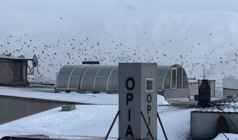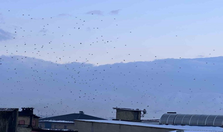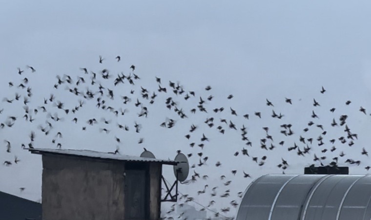 Baharın müjdecisi olarak bilinen sığırcık kuşlar, Yüksekova semalarında adeta görsel şölen sundu.