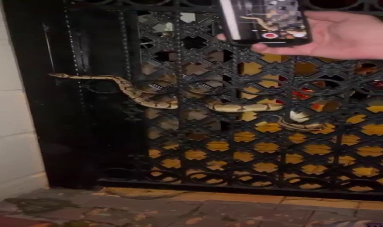 Olay, dün gece saatlerinde Muratpaşa ilçesi Meydankavağı Mahallesi Şehitler Caddesi üzerindeki bir apartmanın giriş kapısında meydana geldi. Delikli demir kapıya kahverengi renkte ve yaklaşık 1,5 metre uzunluğunda bir yılanın dolandığını gören vatandaşlar durumu 112 Acil Çağrı Merkezi’ne bildirdi. İhbarla adrese itfaiye ekibi sevk edildi. Büyük panik yaşayan vatandaşlar yılanı cep telefonu kamerasıyla da kayda aldı.