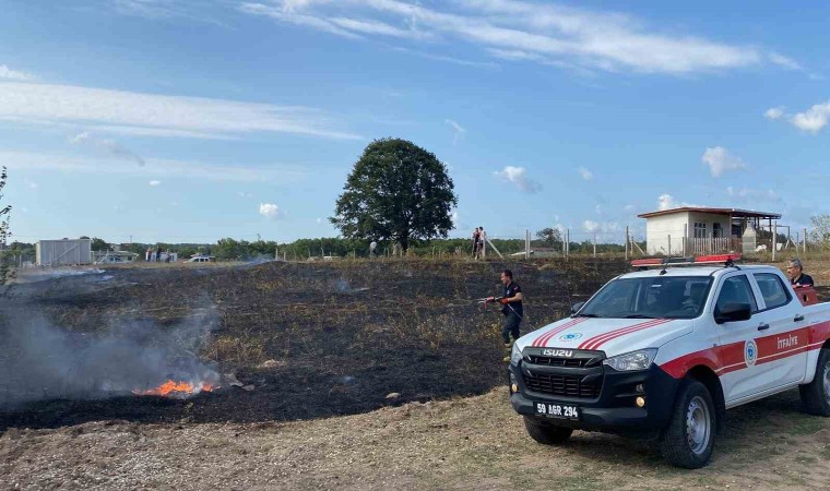 Tekirdağ’ın Kapaklı ilçesinde bahçe şöminesinde çıkan yangın çayırlık alanı küle çevirdi.