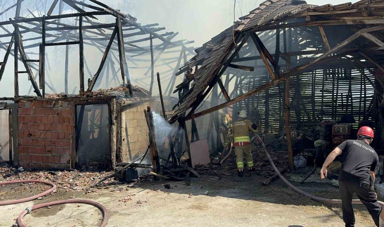 Yangın, Düzce merkeze bağlı Hocaoğlu köyünde meydana geldi. Alınan bilgilere göre, Mustafa K. evinin arka kısmında bulunan otları yaktı. Rüzgarın etkisi ile bir anda büyüyen alevleri söndürmekte güçlük çekilince alevler evin çatısına ve bahçedeki 2 odunluğa sıçradı. Yanmaya başlayan yapıları söndürmek için itfaiye ekiplerine bilgi verilirken, rüzgarın etkisi ile yangın Zehra Ü.’ye ait evin bahçesinde ki 2 katlı ahır ve yanında bulunan garaja sıçradı. Yangında 5 yapı aynı anda yanarken, itfaiye ekipleri bölgeye ulaşarak alevlere söndürme çalışmasına başladı. Kısmi çökmelerin yaşandığı yangında ekipler alevleri bir saatlik çalışma sonucunda söndürerek kontrol altına aldı.
