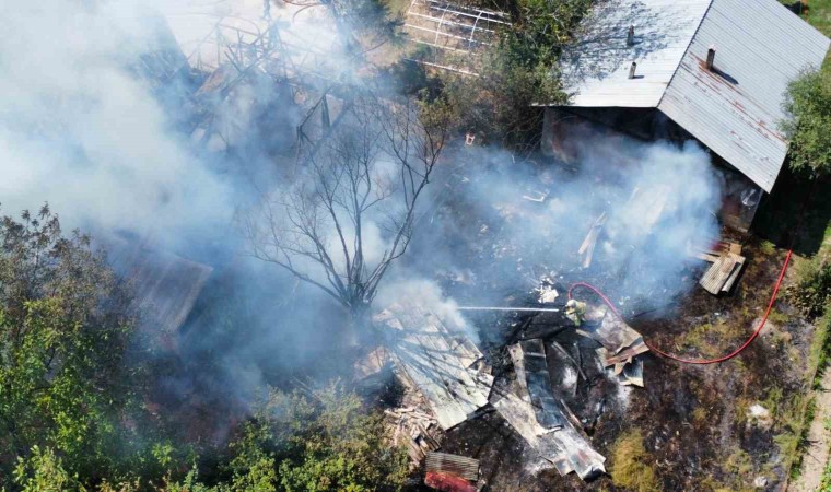 Düzce’de bahçedeki otları yakmak isterken rüzgarın etkisi ile büyüyen yangın 5 yapıyı küle döndürdü.