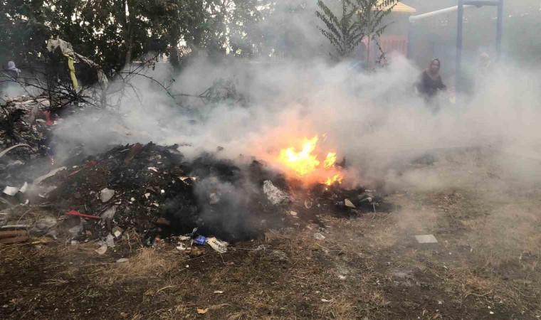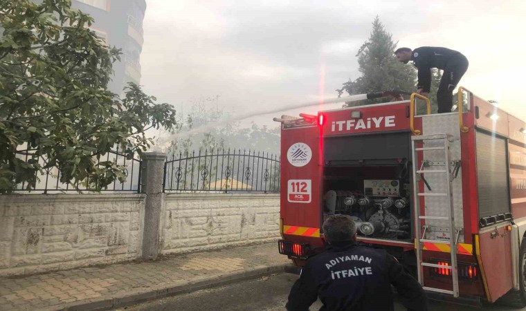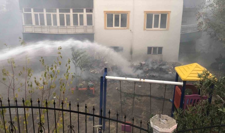 Adıyaman’da bir apartmanın bahçesinde çıkan moloz yangını korku ve paniğe neden oldu.