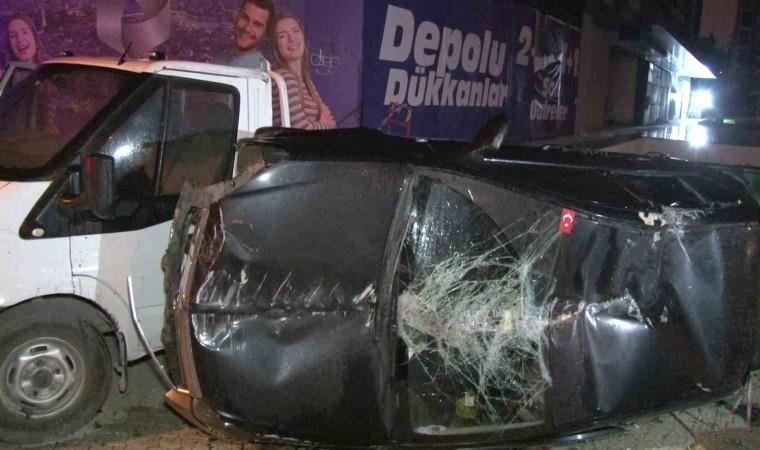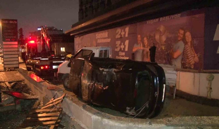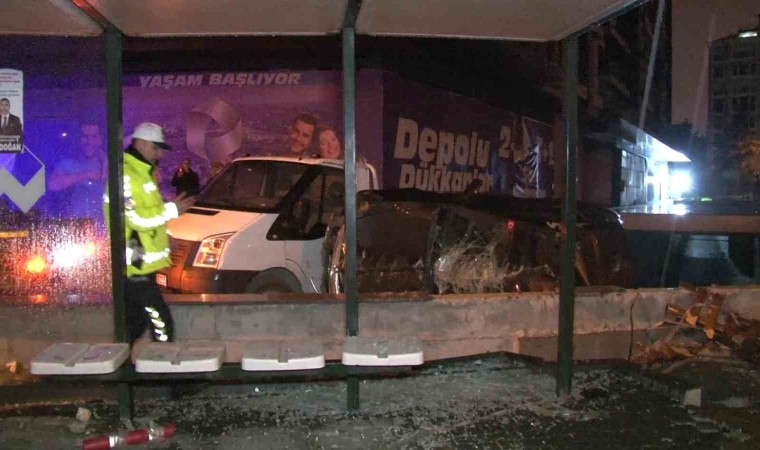 Bahçelievler E-5 Karayolu’nda kontrolden çıkan otomobil önce otobüs durağına, ardında da takla atarak park halindeki kamyonete çarptı. Kaza yapan aracın sürücüsü hafif şekilde yaralandı.
