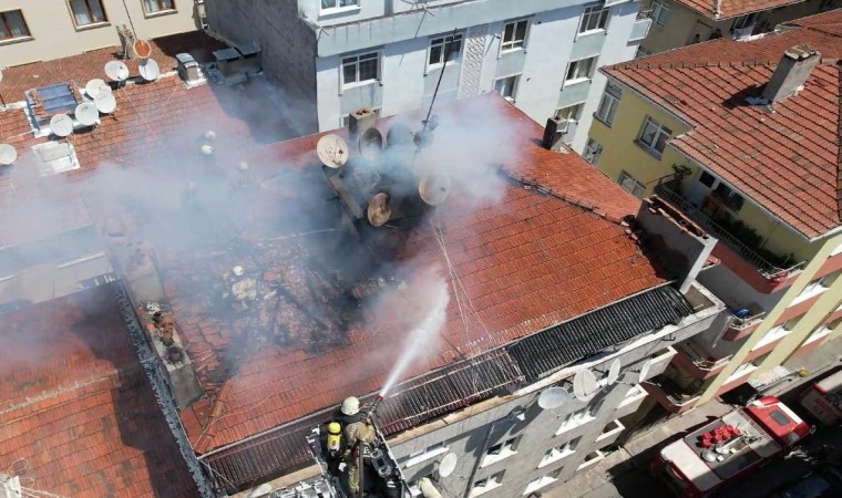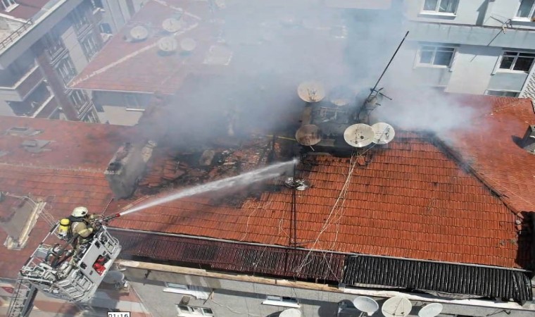 Bahçelievler’de 6 katlı binanın çatı katında bilinmeyen bir nedenle yangın çıktı. Alevlere teslim olan çatı itfaiye ekiplerinin müdahalesinin ardından söndürülürken, o anlar havadan görüntülendi.