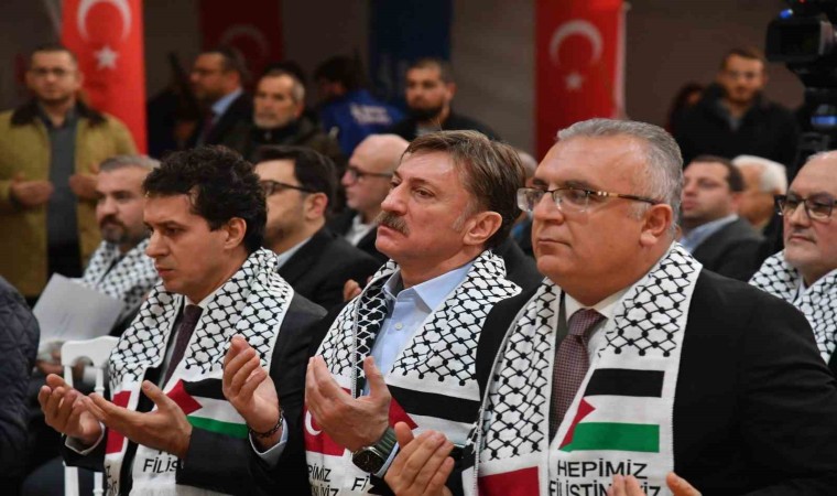 Konuşmasında Filistin toprak bütünlüğünün korunmasında dikkat çeken Bahadır, “Gittikçe küçülen bir Filistin toprağı, gittikçe vahşi, yabani bir şekilde büyüyen İsrail toprakları. O hani güçlüyüz, demokrasi ülkesiyiz diyen ülkelerin gözü önünde açık hava hapishanesinde olsun, Mescid-i Aksa çevresinde olsun Müslümanları katlettiler. Kudüs düşerse tüm Müslüman ülkeler sıkıntıya girer. Bunu benden daha iyi biliyorsunuz. Hamas terör örgütü değildir. Orada kendi topraklarını savunan bir teşkilattır. Burada bir çadır açıyoruz. Vakıflarımız ve derneklerimiz var. Gelmek isteyen dernekler de Gazze yararına bir satış yapacaksa, biz yine yer veririz. Standımız yoksa masa veririz gerekirse. Katil İsrail’i buradan lanetliyoruz. Hitler vardı eskiden, şimdi Netanyahu var. Katil Netanyahu’yu lanetliyoruz” İfadelerini kullandı.
