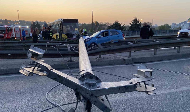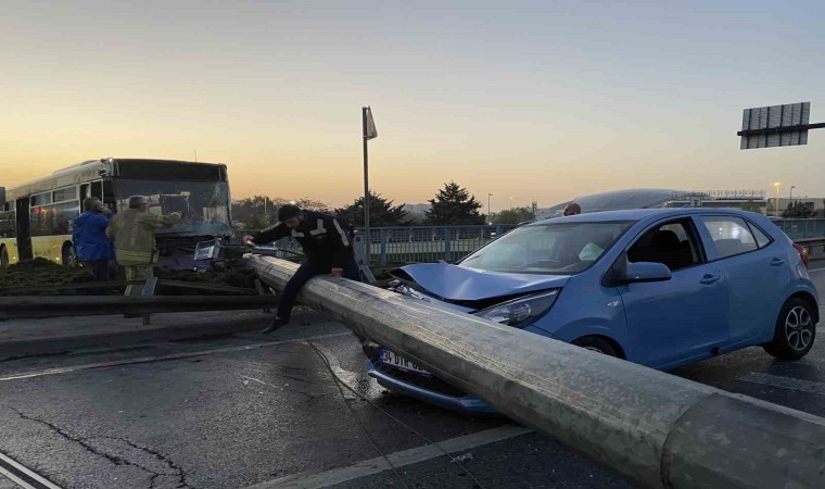 iETT otobüsünün çarptığı aydınlatma direği, köprü üzerinde seyir halinde olan otomobilin üzerine devrildi. Yaşanan kazada İETT otobüsünün boş olması büyük bir faciadan dönülmesine neden olurken otomobildeki sürücü ise şans eseri yara almadan kurtuldu.
