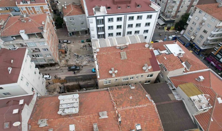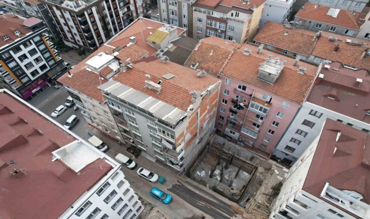 Bahçelievler’de yapımı devam eden inşaatın bitişiğinde bulunan ve tuğla parçaları düştüğü gerekçesiyle boşaltılan 6 katlı bir bina havadan görüntülendi. Binanın 2 katının kaçak olduğu öğrenilirken, tedbir amaçlı boşaltılan binanın taşıyıcı kolon kiriş sistemlerinde inceleme yapıldığı, acil bir risk olmadığını anlaşılan binada geçici oturuma müsaade edildiği, karotun sonucuna göre de çalışma yapılacağı öğrenildi.