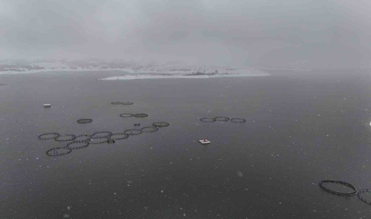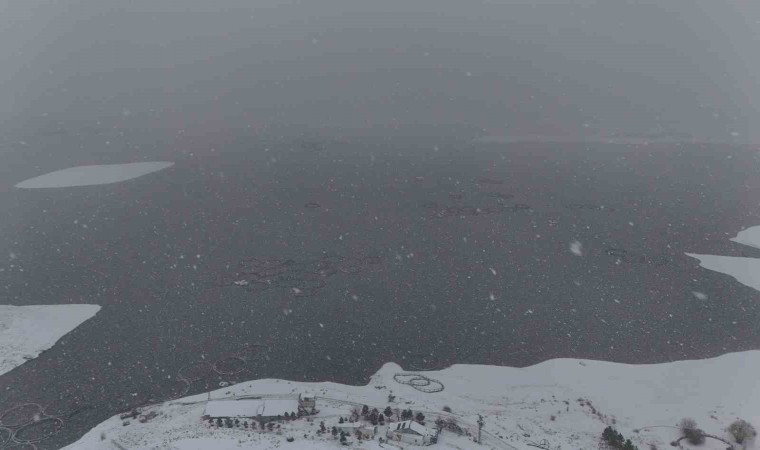 İlçeye yağan karın ardından Bahçelik Barajı, çevresi beyaz örtünün güzelliği ile kuşanırken, barajdaki kış güzelliği ise havadan görüntülendi.