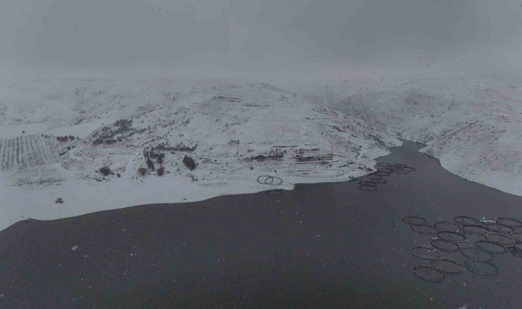 Kayseri’nin Pınarbaşı ilçesinde bulunan Bahçelik Barajı’nda, kar yağışıyla kışın güzelliği de ortaya çıktı.