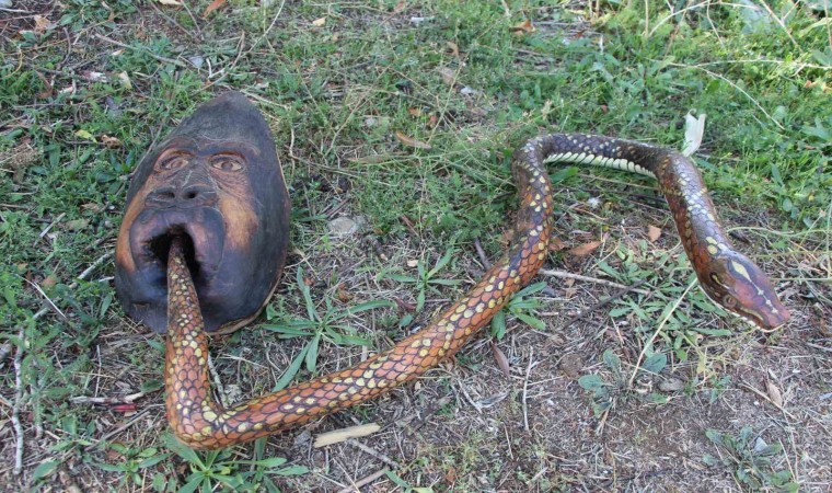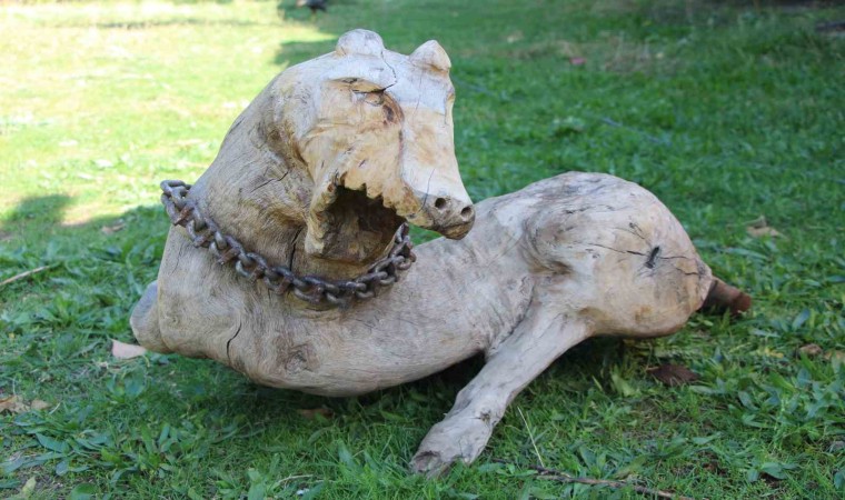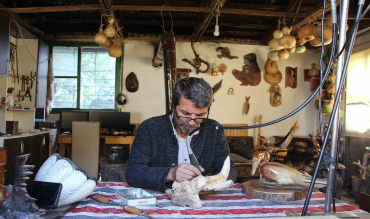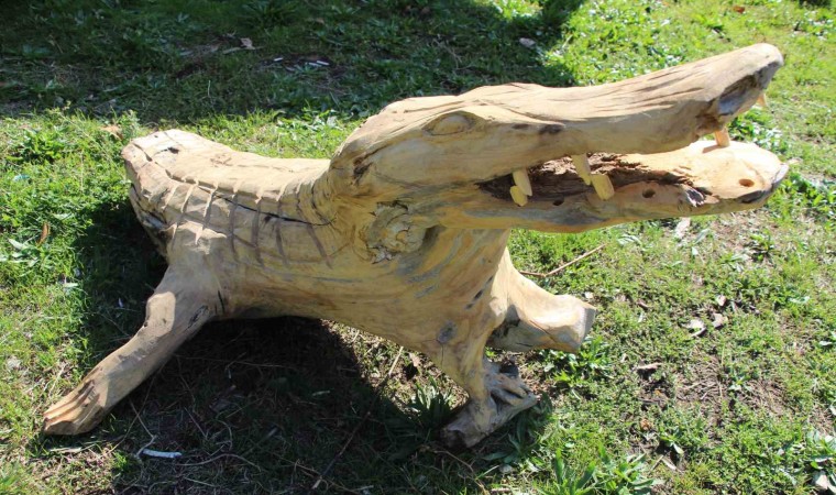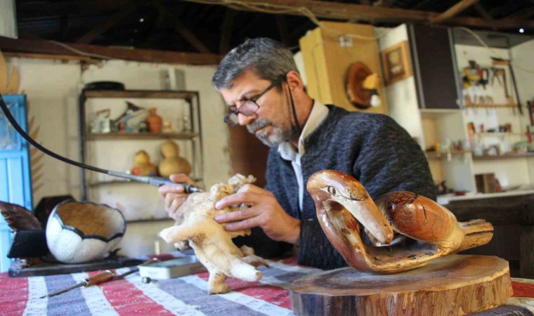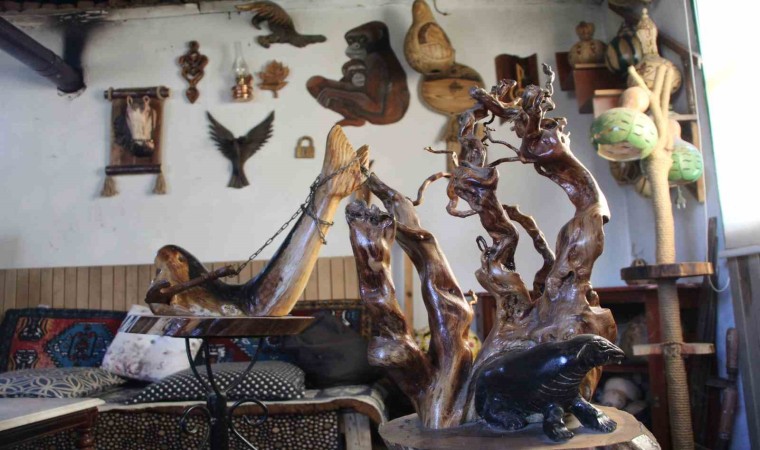 Dere yataklarından, dağlardan bulduğu odunlara timsah, su samuru, yılan, goril yüzü gibi hayvan şekilleri veren Kaya, odun parçalarının çok fazla orijinal yapısını bozmadan hayal gücüyle yaptığını söylüyor.