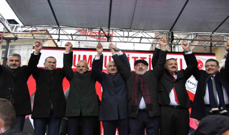 Cumhurbaşkanı Recep Tayyip Erdoğan ve MHP Genel Başkanı Devlet Bahçeli’nin güzel bir birlikteliğini olduğunu kaydeden Bakan Uraloğlu, “Önümüzdeki kıymetli bir seçim var. Şurada sayılı günümüz kaldı o güne kadar inşallah beraberce gayret edelim ve 31 Mart’ta o seçimi alalım. Bizde hizmetlerimize devam edelim. Biz zaten devam edeceğiz de daha iyi devam edebilmek için Beşikdüzü’nün merkezine daha iyi hizmet edebilmek için. Ulaştırma ve Altyapı Bakanlığı olunca daha çok yollar gündeme geliyor. Karadeniz’de, Trabzon’da, Beşikdüzü’nde daha çok yollar gündeme geliyor. Birçok hizmet yaptık birçok ihtiyacınız daha olduğunu biz biliyoruz. Burada dediğim gibi ilçe belediyesi ile Büyükşehir Belediyesi ile her türlü imkana sahibiz. Genel seçime kadar 4 yıl, mahalli seçime kadar 5 yıllık bir süre var. Bu 5 yıllık süre içerisinde zaten Allah nasip eder, Allah ömür verirse hangi görevlerde oluruz bilemeyiz ama tekrar biz buralara geleceğiz tekrar neler yaptık onların hesabını size vereceğiz. O zamana kadar zaten gelip gideceğiz de bu siyaset böyle kısa adımlı değildir uzun adımlıdır. Dolayısıyla o zamana kadar biz ne söz vermişsek yapacağız. Şimdi Büyükşehir Belediye Başkanım dedi ki ’Barış kardeşim ne söz verdiyse ben imza atıyorum’. Benin şimdi ne demem lazım. Yani mecbur ben de ikisine imza atacağım. Başka yolum kalmadı. Bu kadar kalabalık bu kadar yağmurdan sonra. Gerçekten yağmura rağmen beklediniz. 2018’de ekonomik sıkıntılar yaşadık. Arkasında pandemi yaşadık, yetmedi, 6 Şubat depremlerini yaşadık. Bütün bunlara rağmen kamunun yapması gereken hizmetleri durdurduğunu gördünüz mü? Allah rızası için durdurmadık. Recep Tayyip Erdoğan ’Yürüyün’ dedi biz de Allah’ın izniyle yürüdük, yürüdük, devam ediyoruz. Onun yol arkadaşı Milliyetçi Hareket Partisi Genel Başkanı Devlet Bahçeli hocamız. Onların güzel birlikteliği var. Bizim sahadaki birlikteliğimizde tam budur. Biz her şeye rağmen hizmet ettik, etmeye de devam edeceğiz” ifadelerini kullandı.