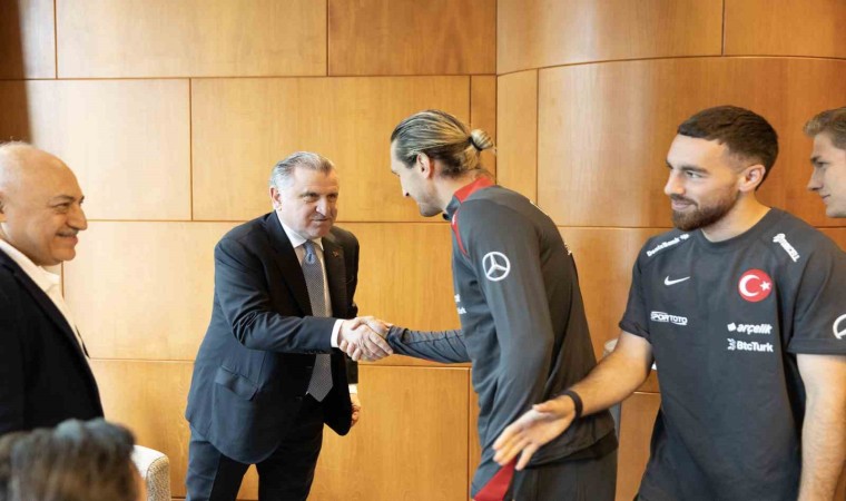 Gençlik ve Spor Bakanı Osman Aşkın Bak ile Türkiye Futbol Federasyonu Başkanı Mehmet Büyükekşi, Polonya maçı öncesi başkent Varşova’da kamp yaptıkları otelde A Milli Takım Teknik Direktörü Vincenzo Montella ve oyuncular ile bir araya geldi.