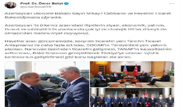 ANKARA, (DHA)- TİCARET Bakanı Ömer Bolat, Azerbaycan Ekonomi Bakanı Mikayıl Cabbarov ve beraberindeki heyet ile bir araya geldi.