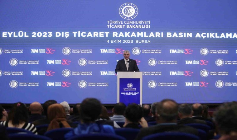 Ticaret Bakanı Ömer Bolat, 2023 Eylül dış ticaret rakamlarını Bursa’da açıkladı. Bolat, “Eylül ayında, ihracatımız yüzde 0,3 lük artışla 22 milyar 670 milyon dolar olarak gerçekleşti. Cumhuriyet tarihinin en yüksek eylül ayı ihracat rakamına ulaşmış olduk. Temmuz ve ağustos ayında da bu rakam en yüksek rakamdı” dedi.