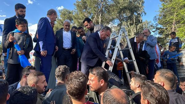 Adalet Bakanı Bekir Bozdağ, Akçakale ilçesindeki irtibat bürosunun açılışının ardından Harran ilçesindeki seçim bürosu açılışına katıldı. (DHA)