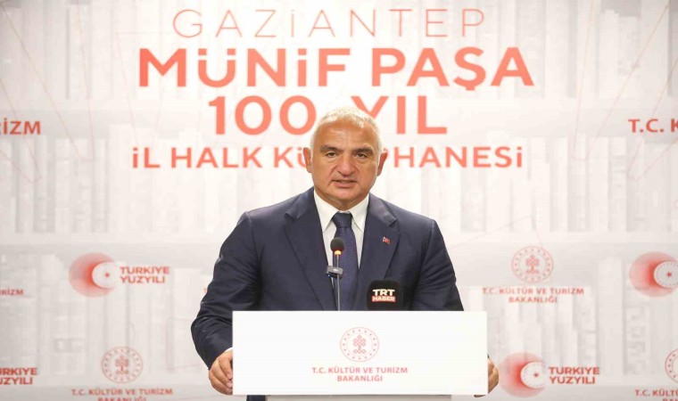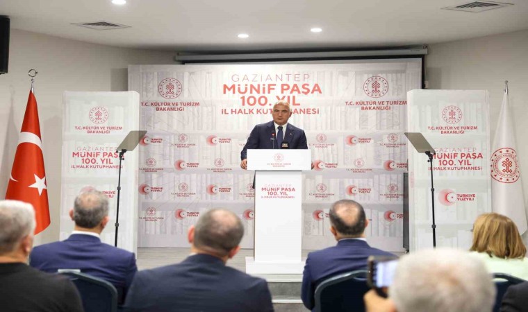 Bir dizi program ve açılış için Gaziantep’te bulunan Kültür ve Turizm Bakanı Mehmet Nuri Ersoy, yapımı tamamlanan Münif Paşa 100. Yıl İl Halk Kütüphanesi açılış törenine katıldı. Törende konuşan Bakan Mehmet Nuri Ersoy, Gaziantep’te toplam 14 kütüphane bulunduğu ve yapılan son kütüphanenin 85 bin kitapla 5 bin 100 metrekare kapalı alanda hizmet vereceğini ifade ederek yakın zamanda kente yeni müjdeleri olacağını söyledi. Bakan Ersoy, bakanlığa bağlı hizmet veren kütüphane sayısının bin 296’ya ulaştığını da açıkladı.
