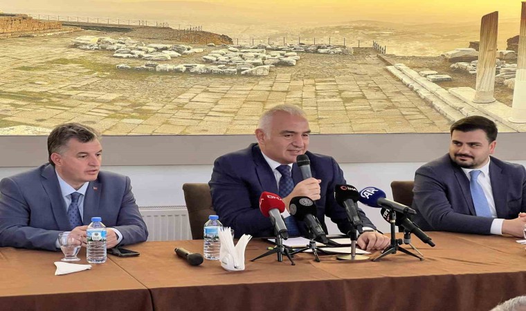 Konuşmasına bakanlık olarak yaptıkları çalışmaları anlatarak başlayan Bakan Ersoy, "Biliyorsunuz 2019 yılında çok önemli bir çalışma başlatmıştık. Kazı süreçlerinin 12 aya yayılması. Yani on iki ay boyunca yıl boyunca çalışması. Çok da başarılı oldu. Şu ana kadar 133 kazı başkanlığı 12 aylık kazı programına geçtiğimiz 4 yıllık dönemde kazandırıldı. 2024 yılında 144 kazı başkanlığı 12 aylık programa dahil edildi. Bir çalışma daha yaptık. Dedik ki bundan sonra daha yoğun kazı yapacağız ve geleceğe miras projesi başladı. Ve yine bu projemize ilk olarak Ege’de Efes’te başladık. Biliyorsunuz 1860’lı yıllardan beri kazılan bir kentimiz Efes. 160 yıl boyunca toplamda yüzde 25’lik kısmı kazılmış. Şimdi bu proje kapsamına dahil edildi. İnşallah 2024 sonunda yüzde 35 seviyelerine getireceğiz. 2025 sonunda da yüzde 45’lik seviyelerine kazılmış olacak. Aynı şekilde sizden önce de Afrodisias’a da gittim. Bugün de Bergama’ya geldik. Aynı geleceğe miras programına Bergama’yı da dahil ettik. Sadece kazı alanları da genişleterek yoğun kazı yaparak restorasyon yaparak süreci tamamlamıyoruz. Önemli olan maksimum seviyede ilçenin ve çevre şehirlerin bundan fayda elde etmesi, bütün şehir paydaşlarının turizm gelirlerinden faydalanmasını sağlayacak bir de ortam oluşturmaya çalışıyoruz. Asıl amaçlarımızdan biri de bu. Burayı da gece konseptine aldık. Gece müzeciliği yazın biliyorsunuz hepiniz buradasınız. Yazın çok sıcak 50 derece sıcakta denizin kenarından, havuzun başından kalkıp şehre inmek istemiyorlar. Program kapsamında şehir merkezlerinde olanlar başta olmak üzere şehir merkezlerine yakın olan ve yoğun ziyaretçisi olan bütün kazı noktalarımızı, ören yerlerimizi aydınlatma sistemleriyle donatıyoruz. Böylelikle gece on ikiye kadar açık hale getiriyoruz. 2024 itibariyle gece müzeciliği başta Ege ve Antalya’daki noktalarımız olmak üzere yoğun ziyaretçi alan, şehir merkezi olan bütün ören yerlerimizde aşamalı bir şekilde başlatıyoruz. Biz Bergama’yı da bu kapsama alıyoruz. Bu yıl itibariyle aşağı noktası öncelikli olarak hayata geçirilecek, önümüzdeki yıl da üst kısımlar gece müzeciliğine dahil edilecek. Hızlı bir restorasyon çalışmasına da burada başlıyoruz. Lansmanını da bugün yaptık, bütçesini de iller seviyesine getirdik" dedi.