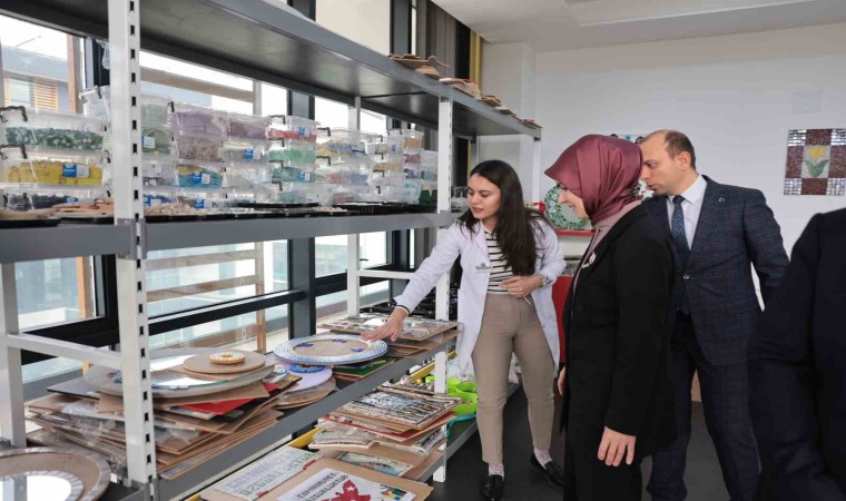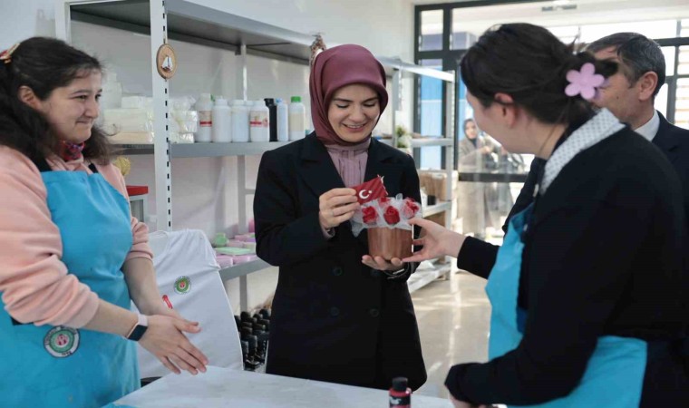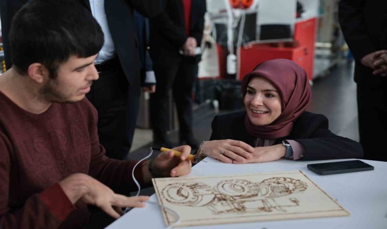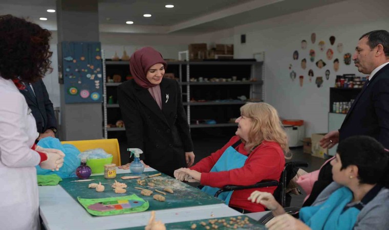 Aile ve Sosyal Hizmetler Bakanı Mahinur Özdemir Göktaş, ziyaret ettiği merkezde engelli kursiyerlerle mozaik yaptı, söyledikleri şarkılara eşlik etti.