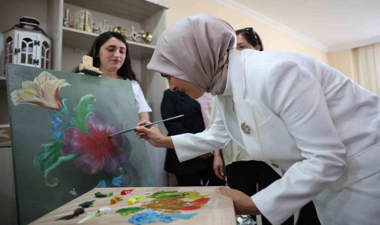 Bakan Göktaş, Hakkari programı kapsamında Aile Destek Merkezi’ni (ADEM) ziyaret etti. Merkezin faaliyetlerine ilişkin bilgi alan Göktaş, kadın kursiyerlerle bir araya geldi. Ahşap atölyesini gezen ve buradaki kadınlarla sohbet eden Bakan Göktaş, bir yağlı boya resminin son bölümünü tamamladı.