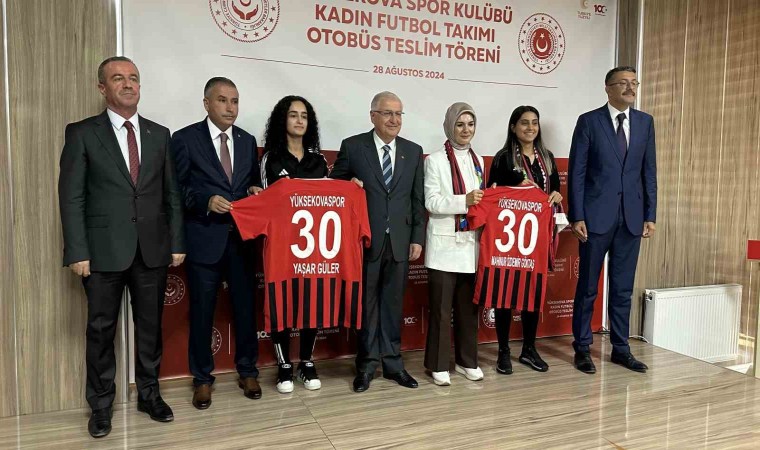 Milli Savunma Bakanı Yaşar Güler ile Aile ve Sosyal Politikalar Bakanı Mahinur Özdemir Göktaş, sabah saatlerinde Hakkari’nin Yüksekova ilçesine gelerek Yüksekova Spor Kulübü Kadın Futbol Takımına otobüs teslim törenine katıldı. Aile ve Sosyal Hizmetler İlçe Müdürlüğünün konferans salonunda saygı duruşunda bulunulması ve İstiklal Marşı’nın okunmasının ardından konuşan Aile ve Sosyal Politikalar Bakanı Mahinur Özdemir Göktaş, Hakkari’de olmaktan mutluluk duyduğunu belirtti. Yüksekova Spor Kulübü Kadın Futbol Takımının yeni otobüsünü teslim etmek üzere bir araya geldiklerini belirten Göktaş, “Kadın sporcularımızın, özellikle futbol gibi bir spor dalında bugünden sonra elde edecekleri başarılara bir katkımız olsun istiyoruz. Kadın futbolcularımızın başarıları ile ön plana çıkmaları, emeklerinin güzel bir sonucudur. Onların bu yolu azim ve kararlılıkla yürümeleri, başarılarının tesadüf olmadığının bir göstergesidir. Aynı zamanda disiplinli bir çalışma ile tüm kapıların açılacağını herkese gösterdiler. Takımımız ortaya koyduğu performansla Kadınlar 1. Ligi’ne yükseldi. Bu anlamda Yüksekova Spor Kulübü Kadın Futbol Takımı yeni başarılara imza atması hepimizi son derece gururlandırıyor. Geçmişte futbol oynayan ve futbolu yakından takip eden biri olarak takımızı tebrik ediyorum. Bakanlık olarak, kadın futbolunu desteklediğimizi özellikle belirtmek istiyorum. Bakanlığımızın çatısı altında takımlar kurarak, kız çocuklarına güzel bir gelecek sunmaya gayret ediyoruz. Ağrı Aile ve Sosyal Hizmetler Spor Kulübümüzü 2015 yılında bu amaçla kurduk. Ağrı Kadın Futbol Takımımız bu yıl 2. lige yükseldi. Bunun yanı sıra Sivas ve İstanbul kulüplerimizle de güzel bir ivme yakaladık. Devlet olarak, genç kızlarımızın hak ettikleri fırsatlara erişimlerini sağlamak en öncelikli görevimizdir. Hakkarili genç kızlarımız, ülkemizin yarınlarını şekillendirecek güçlü bireylerdir. Onların eğitimi, sağlığı, güvenliği, ülkemizin kalkınmasının temel taşlarını oluşturur. Bu anlamda Hakkari başta olmak üzere ülkemizin dört bir yanında genç kızlarımızın hayallerine ulaşmalarını, potansiyellerini gerçekleştirmelerini sağlamak için var gücümüzle çalışıyoruz. Temel hedefimiz kadınların ve genç kızlarımızın, spor dahil olmak üzere hayatın her alanında daha etkin rol almalarını sağlamaktır” dedi.