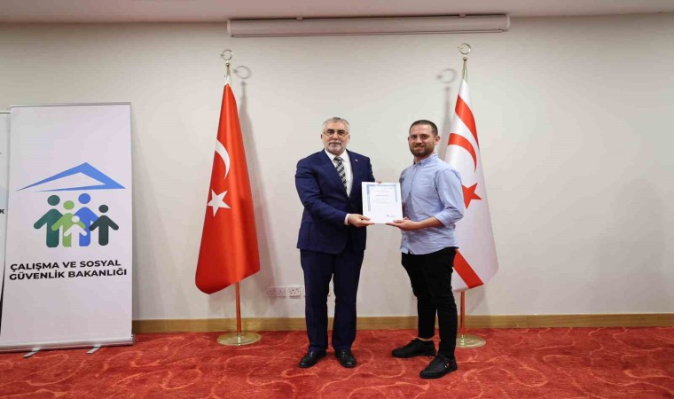 Çalışma ve Sosyal Güvenlik Bakanı Vedat Işıkhan, Kıbrıs Türk Cumhuriyeti (KKTC) temasları çerçevesinde KKTC Çalışma ve Sosyal Güvenlik Bakanı Sadık Gardiyonoğlu ile eğitim sertifika törenine katıldı.