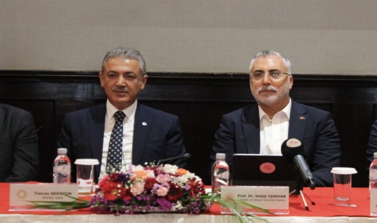 Çalışma ve Sosyal Güvenlik Bakanı Vedat Işıkhan, Mardin’de iş adamları ve STK temsilcileriyle bir araya geldi. Bakan Işıkhan, "İŞKUR vasıtasıyla işverenlerimizi ve işçilerimizi bir araya getiriyor, işverenlerimizin aradığı elemanı bulmasına yardımcı oluyoruz" dedi.