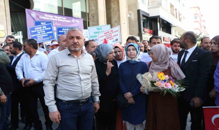 Van’da bazı belediyelerce işten çıkarılan ve geri dönüş için İpekyolu Belediyesi önünde eylem yapan işçiler, Çalışma ve Sosyal Güvenlik Bakanı Vedat Işıkhan’ın toplantı yapacağı Elite World Van Otel önüne kadar yürüdü. ’İşçiler asla pes etmeyecek’, ’Hak-İş nerede biz oradayız’ sloganları atan işçiler, Bakan Işıkhan’ı çiçeklerle karşıladı. Burada Bakan Işıkhan ile görüşen Hak-İş İl Başkanı Fatih Akdeniz ile işçiler, yaşadıkları sıkıntıları anlattı.