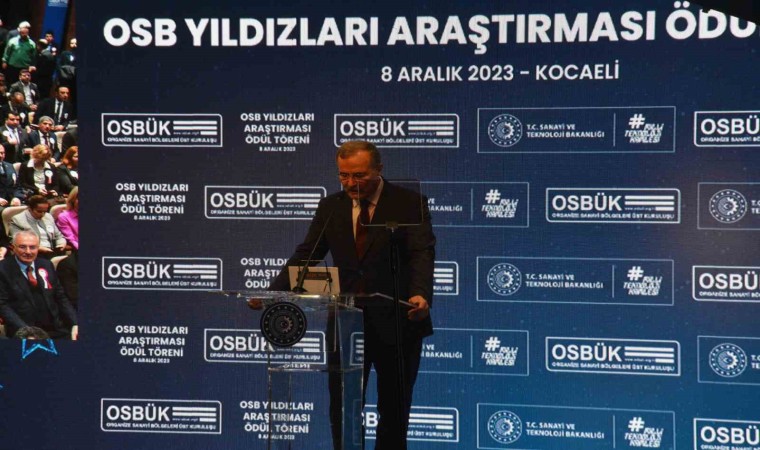 Kocaeli’de, Organize Sanayi Bölgeleri Üst Kuruluşu (OSBÜK) tarafından düzenlenen törene katılan Sanayi ve Teknoloji Bakanı Mehmet Fatih Kacır, "Bir dönem en temel savunma sanayi ürünlerini bile ithal ederken bugün insansız hava aracı üretiminde dünya birincisiyiz. 60 yıllık hayalimiz, doğuştan elektrikli ve akıllı milli otomobilimiz Togg yollarda. Güneş panellerinde, ticari araçlarda, beyaz eşyada Avrupa’nın en büyük üreticisiyiz" dedi.