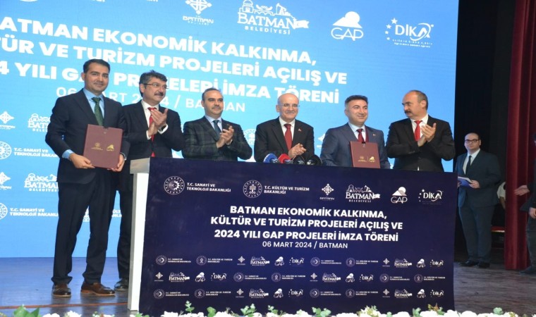 Sanayi ve Teknoloji Bakanı Fatih Kacır ile Hazine ve Maliye Bakanı Mehmet Şimşek, Batman’da Ekonomik Kalkınma, Kültür ve Turizm Projeleri açılış ve 2024 Yılı GAP Projeleri imza törenine katıldı. Bakan Kacır, "Son 22 yılda 26,4 milyar lira tutarında sabit yatırım için bin 570 yatırım teşvik belgesi düzenledik" dedi.