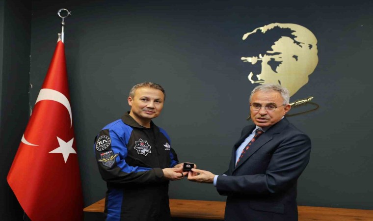 Rektör Prof. Dr. Arif Özaydın, program sonunda Sanayi ve Teknoloji Bakanı Mehmet Fatih Kacır ve Türkiye Uzay Ajansı Yönetim Kurulu Üyesi ve ilk Türk astronot Alper Gezeravcı’ya hediye takdim etti.