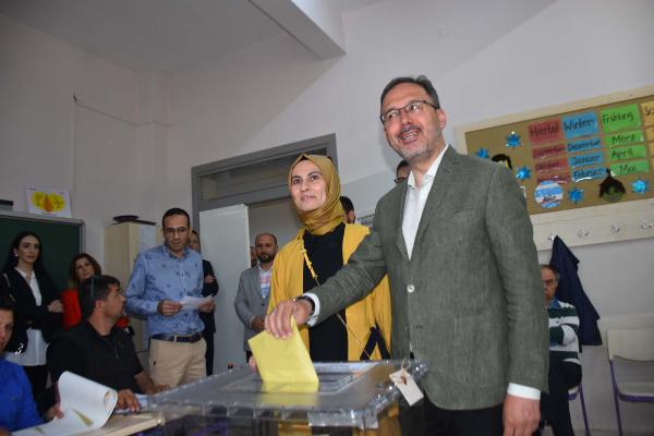 Hande NAYMAN/İZMİR, (DHA)-GENÇLİK ve Spor Bakanı Mehmet Muharrem Kasapoğlu, seçim bölgesi İzmir'de eşi ile birlikte oy kullandı. Cumhurbaşkanı Seçimi ve 28'inci Dönem Milletvekili Genel Seçimi'nin hayırlı olmasını dileyen Kasapoğlu, "Gün sonu itibarıyla milletimizin kararı ortaya çıkmış olacak" dedi.