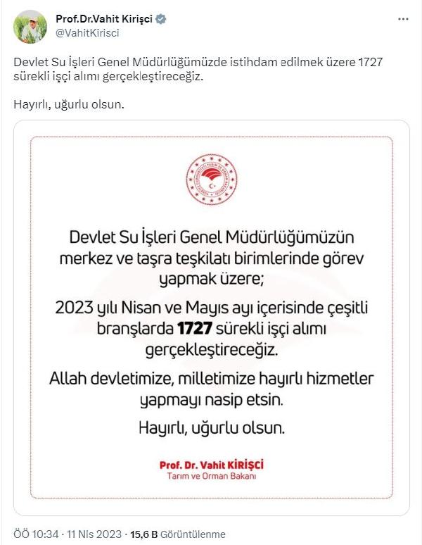 Bakan Kirişci: DSİ'ye 1727 işçi alımı gerçekleştireceğiz