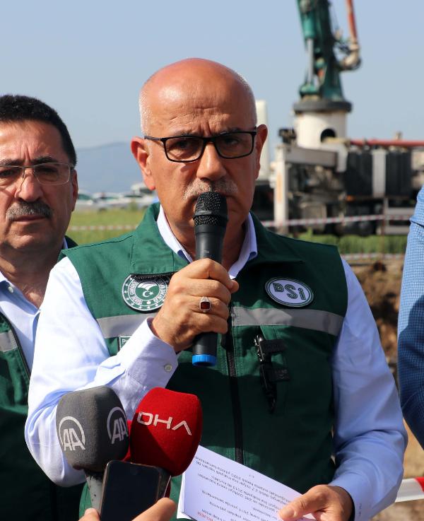 Bakan Kirişci, açıklamasının ardından sulama sistemlerinde kullanılan boru hatları içerisinde incelemelerde bulunarak burada hatıra fotoğrafı çektirdi. (DHA)
