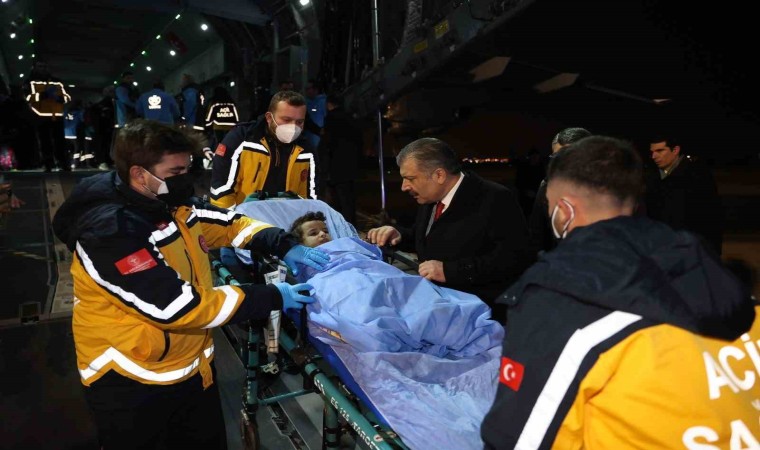 Burada basın açıklaması yapan Bakan Koca, “Bugün toplam 68 hastamızın naklini yapmış olduk. 68 hastamızdan 37’si bebek ve çocuk hasta grubu. 31 kişi ise erişkin hasta grubu. 68 hastanın içindeki 4 hasta kanser hastası. Diğer hasta grubu ağırlıklı travma, ortopedi ve yaralanma grubu olan hasta grubu. Etlik ve Bilkent Şehir Hastanelerimize naklini yapıyoruz. Toplam 114 hastamız var idi, şu an toplam gelen 68 hastayla birlikte 182 hastamız oldu. Refakatçilerle birlikte toplam 359 kişi getirilmiş oldu. Hastalarımızdan bugüne kadar 2 hastamızı kaybettik. Şu an 6 hastamız yoğun bakımda. Yoğun bakımda olan 2 hastamızın ise durumları ciddi, entübe durumdalar. Bir hastamız göğüs kanseri, bir hastamız ise mide kanseri tanısı ile takip ediliyor. Biri 63, biri 70 yaşında olan hastalarımız” diye konuştu.