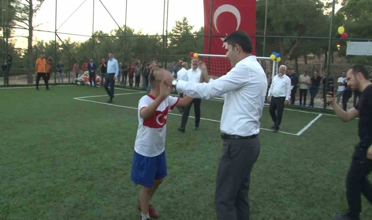 Çevre Şehircilik ve İklim Değişikliği Bakanı Murat Kurum, çocuklara söz verdiği halı sahayı yaptırarak aynı halı sahada çocuklarla maç yaptı.