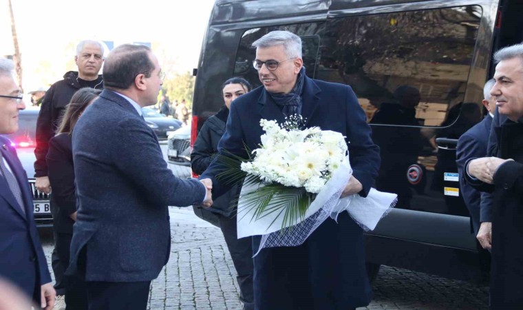 Sağlık Bakanı Kemal Memişoğlu, çeşitli programlara katılmak üzere geldiği İzmir’de ilk olarak İzmir Valiliğine ziyarette bulundu. Bakan Memişoğlu, Vali Süleyman Elban, AK Parti İzmir Milletvekili Yaşar Kırkpınar, MHP Genel Sekreter Yardımcısı ve İzmir Milletvekili Tamer Osmanağaoğlu, Dokuz Eylül Üniversitesi (DEÜ) Rektörü Prof. Dr. Bayram Yılmaz, MHP İzmir İl Başkanı Veysel Şahin ve İzmir İl Sağlık Müdürü Burak Öztop tarafından karşılandı. Ziyareti sırasında basın mensuplarına açıklamalarda bulunan Memişoğlu, “Sağlıklı Türkiye Yüzyılı kapsamında 39’uncu ilimiz olan ziyaretimizi Ege’nin incisi İzmir’e yapıyoruz. İzmir, sağlık anlamında iyi yerlerde. 31’i kamu hastanesi olmak üzere bir şehir hastanemiz var. Eğitim araştırma hastanelerimiz, 2 tane üniversite hastanemiz, toplam 64 hastanemizle sağlık anlamında Türkiye’nin en önemli yerlerinden bir tanesi. Valimiz, milletvekillerimiz, siyasetçilerimizle birlikte daha iyi sağlık hizmeti için toplantılar yapıp, ziyaretlerde bulunacağız” dedi.