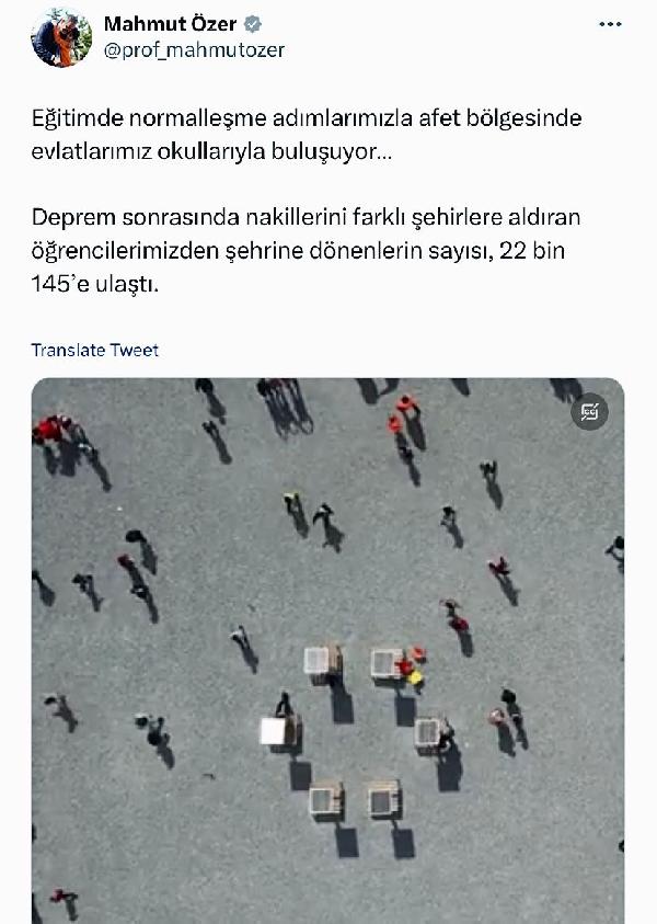 Bakan Özer, Twitter hesabından yaptığı açıklamada, "Eğitimde normalleşme adımlarımızla afet bölgesinde evlatlarımız okullarıyla buluşuyor. Deprem sonrasında nakillerini farklı illere aldıran öğrencilerimizden şehrine dönenlerin sayısı, 22 bin 145'e ulaştı" dedi. (DHA)