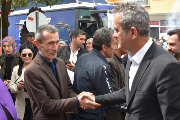 Özer, daha sonra ilçedeki bir kahvehaneye girerek vatandaşlarla çay içti. Bakan Özer, ardından muhtarlarla bir araya geldi. (DHA)