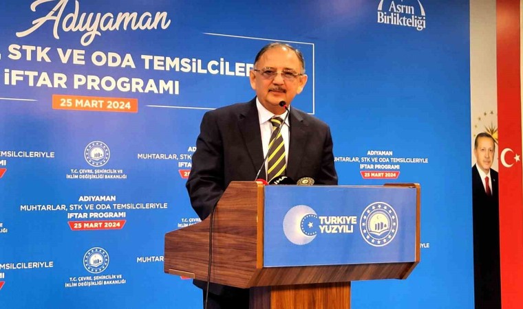 Çevre, Şehircilik ve İklim Değişikliği Bakanı Mehmet Özhaseki, Adıyaman’da sivil toplum kuruluşu temsilcileri ve muhtarlarla iftarda bir araya geldi. İftar programında konuşan Bakan Özhaseki, deprem sonrası yapılan hizmetlerden bahsederek, “Adıyaman özelinde söylüyorum 39-40 bin kadar hak sahibimiz var. Biz burada 45 bin civarında inşaata başladık. İndere bölgesindeki konutları görüyorsunuz. Rezerv alan ilan ettiğimiz Atatürk Bulvarı üzerindeki yeri de görüyorsunuz. Rezerv alan ilan ettiğimizde bir tayfa, ‘Malımıza çöküyorlar, tapumuzu alıyorlar’ diye bağırıyorlardı. Şimdi her taraftan ‘Gelin burayı da rezerv alan ilan edin de yapın’ demeye başladılar. Yapınca da iyi yapıyoruz. TOKİ, 22 yılda 1 milyon 340 bin konut yaptı, bir tanesi bile depremde yıkılmadı. Sıva çatlağı bile yok. Şimdi de burada Emlak Konut vasıtasıyla en lüks evleri yapmaya devam ediyoruz. Yapmışken en iyisini yapıyoruz. Köylerimizde çelik karkastan evler yapıyoruz. Birkaç tane zarar gören bölgemiz için de 6 milyar lira ayırdık. Alt yapıyı baştan sona yeniliyoruz. Bu yaz çalışmalara başlıyoruz. Bir iki sene buralar şantiye gibi olur, ama ondan sonra hepimizin övündüğü, iftihar ettiği bir Adıyaman ortaya çıkar. Eski belediye binamızın oradan başlamak üzere bir merkez yapıyoruz, meydan oluşturuyoruz. Meydan projesine son halini verdik” dedi.