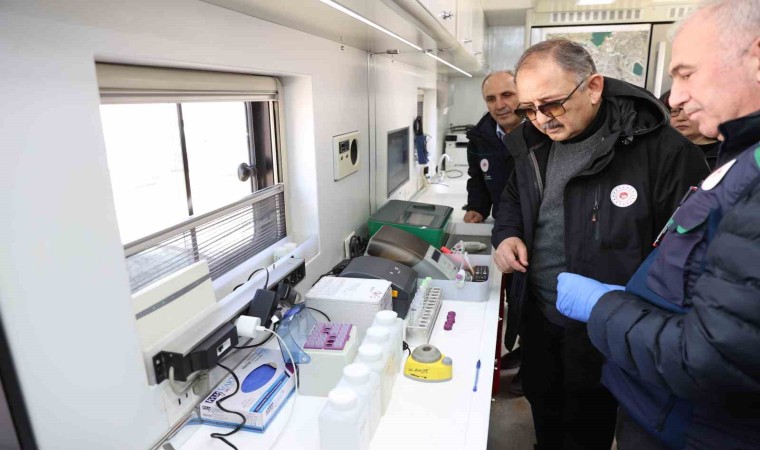 Çevre, Şehircilik ve İklim Değişikliği Bakanı Mehmet Özhaseki, mobil laboratuvarda yapılan analizler ve analiz yöntemleri, bölgede yapılan yeraltı ve yerüstü su izleme çalışmaları kapsamında belirlenen çevresel izleme noktaları hakkında yetkililerden bilgi aldı.