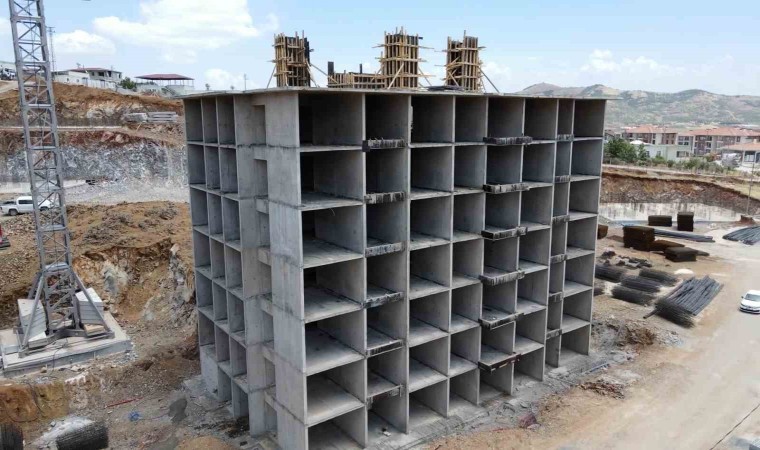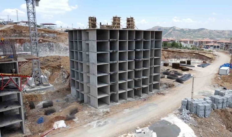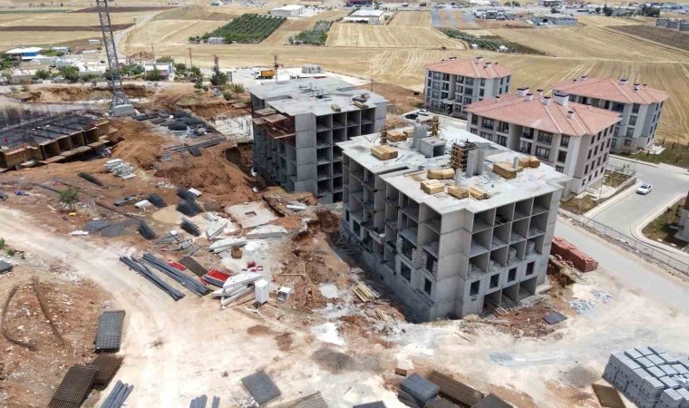 Depremzedelerin ihtiyaçları doğrultusunda yatay mimariye uygun olarak zemin artı 3 ve zemin artı 4 katlı olarak yapılan konutların 118’i 2 artı 1, 338’i ise 3 artı 1 oda şeklinde inşa ediliyor. Kaba inşaatın tamamlanan konutlarda, duvar ve çatı imalatlarına geçildi.