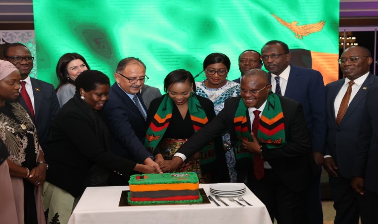Konuşmaların ardından Bakan Özhaseki, Büyükelçi Sikazwe ve davetliler, Zambiya Cumhuriyeti’nin 59. Bağımsızlık Günü pastasını kesti.