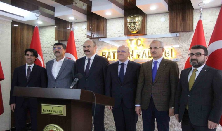 Hazine ve Maliye Bakamı Mehmet Şimşek, Ulaştırma Bakanı Abdulkadir Uraloğlu ile birlikte memleketi Batman’da bir dizi temaslarda bulundu. Batman Valiliğinde İl Koordinasyon Toplantısına katılan Bakan Şimşek, toplantı sonrası düzenlediği basın toplantısında açıklamalarda bulundu. Bakan Şimşek, “Baba ocağım Batman’da olmaktan mutluluk duyuyorum. Valimiz ve Milletvekilimiz çok güzel bir çalışma yapmışlar. Batman’ın bütün ulaşım sorunlarını bize sundular. Birçok projeyi değerlendirme fırsatımız oldu. Son 20 yılda her alanda olduğu gibi özellikle ulaşım altyapıda Batman büyük bir ilerleme sağladı. Birçok sorunun köklü çözümünü ürettik. Önümüzdeki dönemde yine bu yatırım seferberliği devam edecek. Bizim hükümetlerimizin en önemli özelliği hizmet siyaseti yapıyor olmamızdır. Hizmet siyaseti esastır çünkü biz halkımızın, milletimizin hizmetkarıyız. Cumhurbaşkanımızın felsefesi bu. Bu çerçevede de önümüzdeki yıllarda yoğun bir şekilde diğer illerimizde olduğu gibi Batman’a da hizmet noktasında büyük bir çaba içerisinde olacağız. Şuanda Batman’da devam eden projelerin tamamı 13 buçuk milyar liradır. Çok ciddi bir rakamdır. Sadece ulaşım konularını ağırlıklı olarak bugün konuştuk ama Batman’nın önemli bir sanayi üssü olmasında da çok ciddi bir proje ve çalışmalar var. Onu ayrı bir dönemde bu konuları paylaşacağız. Bugünkü esas konumuz ulaştırma altyapısı. Bakanımızın da burada olması şehrimiz için bir fırsattır” diye konuştu.