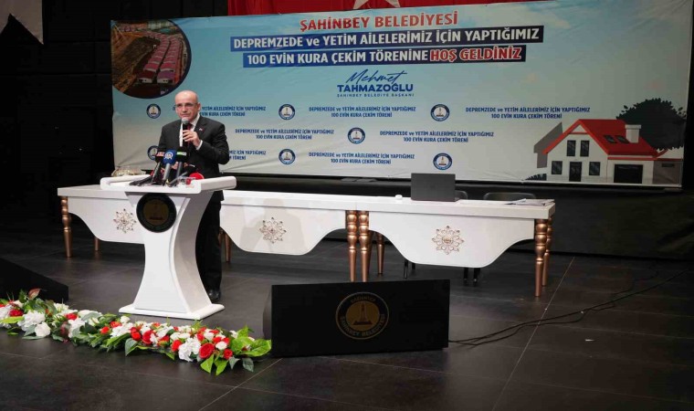 Hazine ve Maliye Bakanı Mehmet Şimşek, Şahinbey Belediyesi tarafından depremzede ve yetim aileler için yapımı tamamlan 100 adet konutun kura çekim törenine katıldı. Bakan Şimşek, insan odaklı yatırımların öneminden bahsederek, "İnsana dokunan projeleri Ankara’dan desteklemeye devam edeceğiz" dedi.