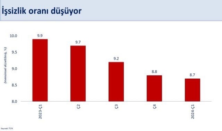 İstihdam verilerine ilişkin verileri de paylaşan Şimşek, “İlk çeyrekte geçen yılın aynı dönemine göre 1 milyon 46 bin kişi ilave istihdam sağlandı. Mevsimsel düzeltilmiş işsizlik oranı son 44 çeyreğin en düşük seviyesi olan yüzde 8,7’ye geriledi” ifadelerine yer verdi.