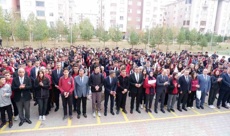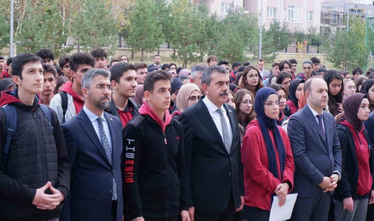 Milli Eğitim Bakanı Yusuf Tekin, Erzurum Türk Telekom Nurettin Topçu Sosyal Bilimler Lisesi öğrencileri ile birlikte Filistin şehitleri için okul bahçesinde 1 dakika saygı duruşunda bulundu.