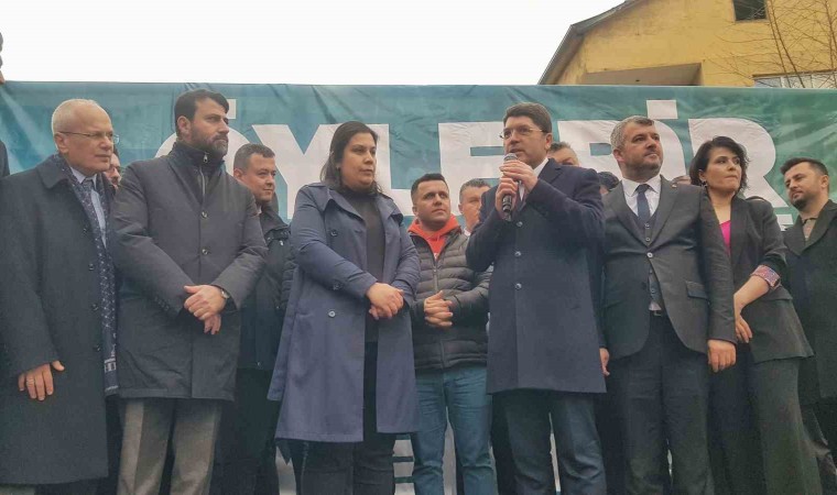 Bakan Tunç, "Cumhurbaşkanımızın dışında milletin huzuruna çıkıp büyük meydanlarda halka seslenebilen başka bir siyasetçi kaldı mı? 10 ay önce altılı masa vardı. Masanın altı, üstü vardı. Bir cumhurbaşkanı adayları vardı. Bu ülkeye cumhurbaşkanı yapacaklardı ama bu ülkeye cumhurbaşkanlığına layık gördükleri birisini kendi partilerine, genel başkanlığa layık görmediler. Attılar kenara. Onun yardımcıları olacaktı. Cumhurbaşkanı yardımcıları. Her partinin bir genel başkanı aynı zamanda neydi? Cumhurbaşkanı yardımcısı adayıydı. Şimdi neredeler? Birbirlerine düştüler. Bunlar iktidarı devralsalardı. Ne olurdu bu ülkenin hali? Ne yaparlardı? İktidarı paylaşabilirler miydi? İlk günden kavgaya tutuşurlardı. Ülkeyi bir kaosa sürüklerlerdi. İşte millet buna müsaade etmedi. Millet 10 ay önce Cumhur İttifakı’yla Recep Tayyip Erdoğan’la yola devam dedi" ifadelerini kullandı.